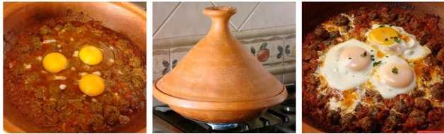 Les photos suivantes montrent la préparation traditionnelle de ce tajine en utilisant la recette tajine de kefta aux oeufs sur le site.