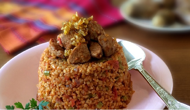 Dans une cocotte minute, sur feu moyen, mettre le smen, le blanc de poulet et l?oignon râpé et laisser revenir pendant 10mn. Ajouter le sel, la cannelle, le poivre noir et l?eau. Fermer la cocotte...