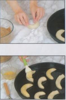 Rouler la pâte sur la farce en lui donnant une forme de croissant de lune. Fourrer tous les cercles de la même façon.