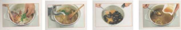 Dans une cocotte, faites revenir dans le beurre la viande de b?uf coupée en petits cubes, avec la cannelle. Mouillez avec 1L d'eau. Ajoutez le sucre et portez à ébullition.